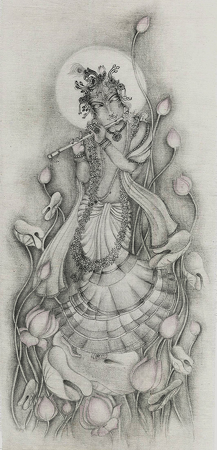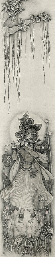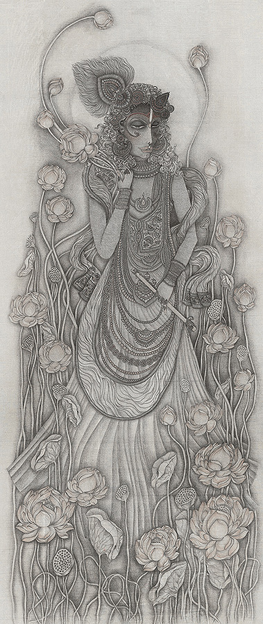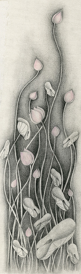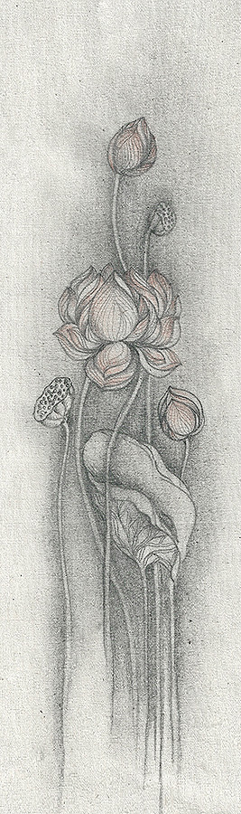 Medium pencil colours, Gel pen and charcoal on cotton fabric