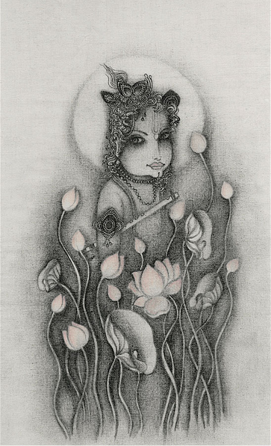 The Series Kanjalochana is a beautiful composition of the eternal beauty of Lord Krishna surrounded by the serene Lotus forest. The series connect to the melodious bliss of lotus and the lord.