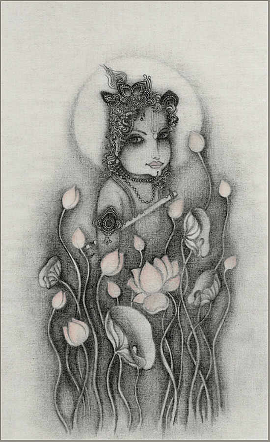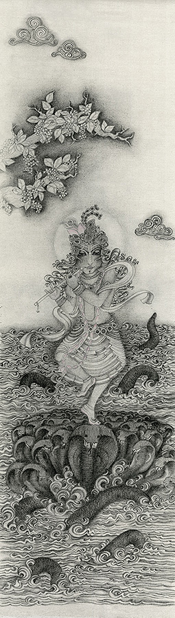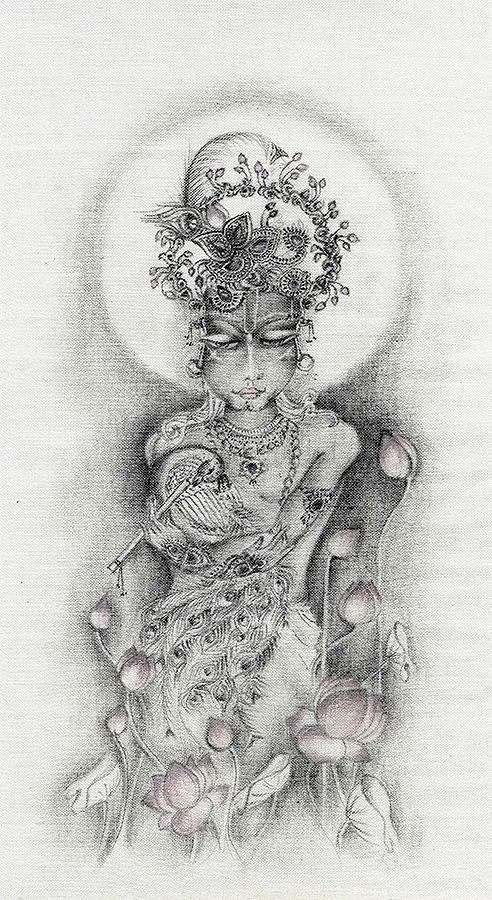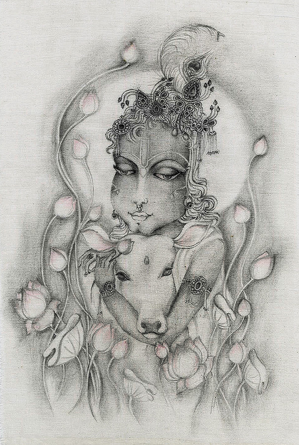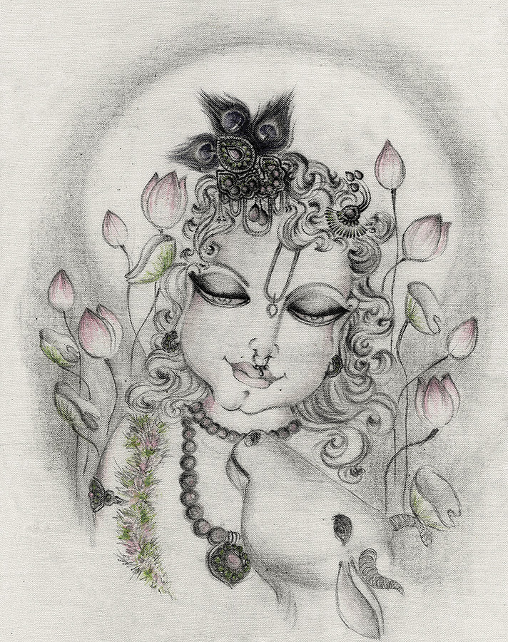 Medium pencil colours, Gel pen and charcoal on cotton fabric